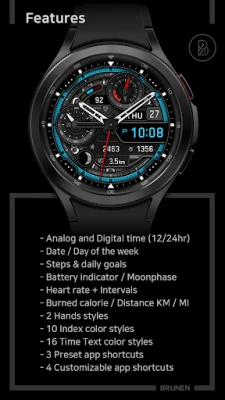 Predstavljamo vam elegantno sučelje za pametni sat, dizajnirano od strane BRUNEN Design tima, koje savršeno spaja estetiku s vrhunskom funkcionalnošću. Bez obzira preferirate li klasični analogni prikaz ili moderni digitalni format, s opcijom 12-satnog ili 24-satnog prikaza, ovo sučelje pruža vam jasan i trenutan uvid u vrijeme. Dodatno, s podrškom za više jezika, datum i dan u tjednu uvijek će biti prikazani na način koji vam najviše odgovara, osiguravajući globalnu pristupačnost i jednostavnost korištenja.